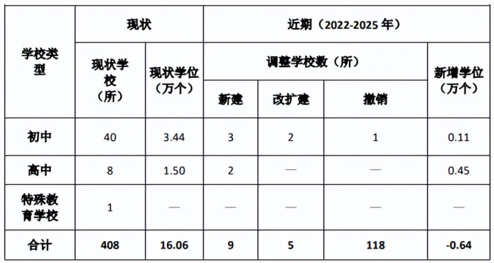至2035年,全区基础教育学校从现状的408所增加至440所。